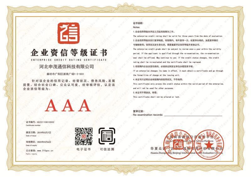 企业资信等级证书